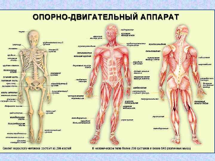 Опорно-двигательный аппарат (костно-мышечная система) комплекс образований, придающих форму и дающих опору телу, обеспечивающих защиту внутренних органов и передвижение организма в пространстве.
