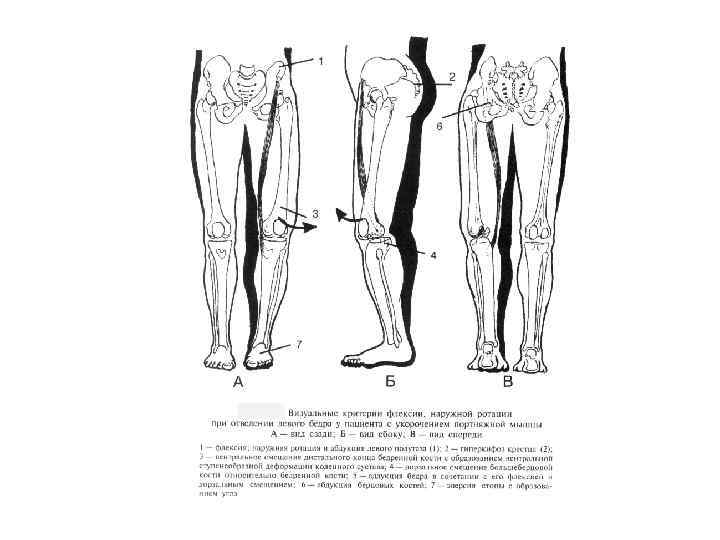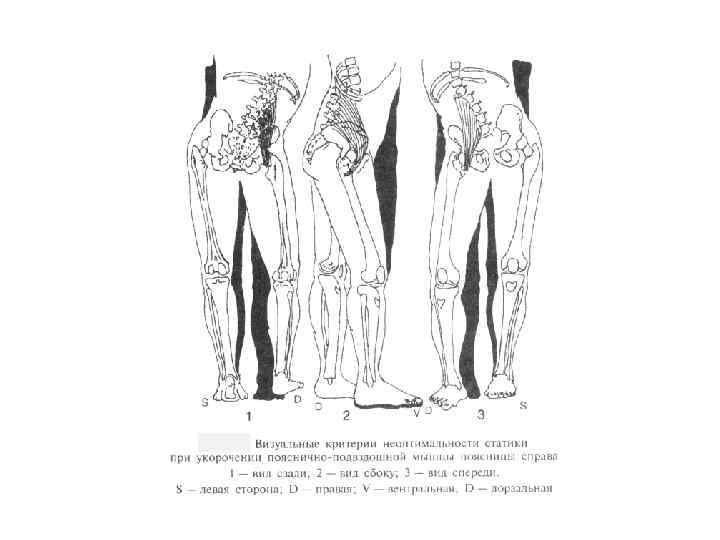 Дифференциально-диагностические критерии отличия косого таза мышечного генеза, отличающие его от истинного укорочения ноги 1. Кроме латерофлексии таза, в каждом полутазе присутствуют флексия/экстензия, ротация, аддукция/абдукция в разной комбинации в зависимости от преимущественного укорочения конкретной мышцы. 2. Кроме косого положения таза всегда наблюдается дисфункция тазобедренного или коленного сустава (второе место прикрепления мышц), подколенная ямка одной ноги находится в положении ротации, флексии/экстензии, абдукции/аддукции. 3. Несмотря на различие в направлении движения все вышеперечисленные мышцы при концентрическом сокращении обладают краниальной тягой бедра к одноименному полутазу. Это клинически подтверждается пробой Derbolowsky. В положении сидя, когда мышцы расслабляются, длина «укороченной» ноги «увеличивается» . Это позволяет отличить ложное укорочение ноги от истинного. При истинном укорочении при любом положении тела нога остается «короткой» . В связи с этим подход некоторых авторов к использованию резиновой стельки под короткую ногу оказывается не всегда эффективным. Такое ложное «укорочение» необходимо устранять, воздействуя на тонусно силовой дисбаланс мышц, а не косметически корректировать укорочение ноги, еще более сближая места прикрепления укороченных мышц и еще больше увеличивая их укорочение.