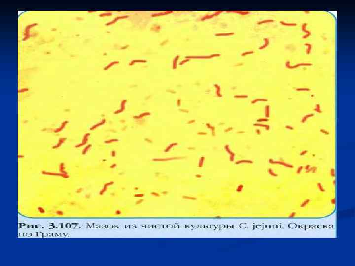 Основные биохимические свойства кампилобактеров Оксидаза Рост при 42 0 С Гидролиз натрия гиппурата Вид бактерий Каталаза Чувствительность к налидиксовой кислоте С. jejuni + + + C. fetus + + - - - C. coli + + + - +