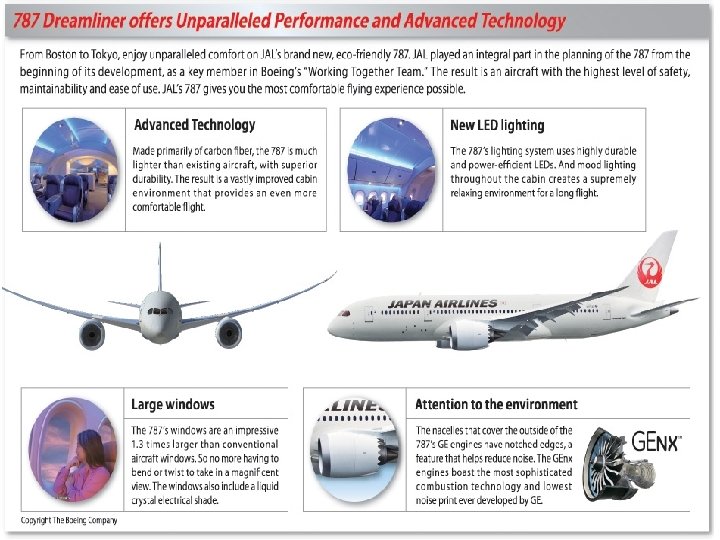 JAL’s International Network Boeing 787: Future service introduction status - Tokyo (Narita) – Singapore, JL 719/712, JL 711/710 14 services a week will operate from Narita from the 28 th of October, and departing Singapore from the 29 th of October. Helsinki Boston San Diego Schedule and aircraft types are subject to change without notice.