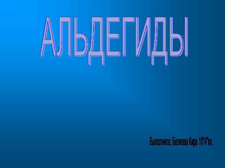 АЛЬДЕГИДЫ- кислородсодержащие производные углеводородов, содержащие карбонильную группу С=О. В альдегиде две валентности атома углерода карбонила заняты алкильным радикалом и атомом водорода.
