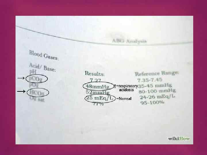 Значение р. CO 2 Это количество углекислого газа в крови. Это дыхательный компонент кислотно-щелочного баланса. Этот показатель измеряется в миллиметрах ртутного столба (мм рт. ст. ) Нормальный уровень р. СО 2 между 35 и 45 мм рт. ст. Состояние дыхательного алкалоза присутствует, если число р. CO 2 ниже 35 мм рт. ст. Это означает, что в крови слишком мало углекислого газа. Человек в таком состоянии может дышать слишком быстро (гипервентиляция). Состояние дыхательного ацидоза присутствует, если число р. CO 2 выше 45 мм рт. ст. В крови присутствует слишком много углекислого газа. Человек в таком состоянии может быть напуган или обеспокоен и частота сердечных сокращений может быть низкой.