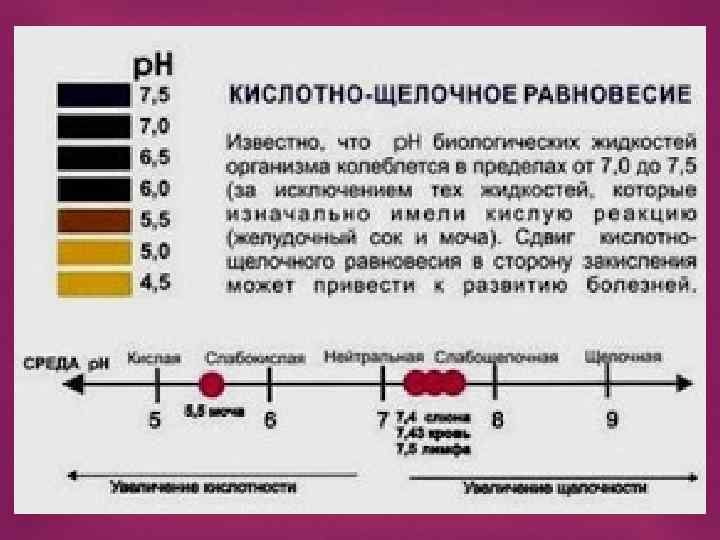 Уровень р. Н крови здорового человека должен быть между 7, 35 и 7, 45. Ваш организм стремится поддерживать постоянный баланс р. Н. Если уровень р. Н ниже 7, 35, возникает состояние ацидоза, что указывает на накопление углекислого газа в крови. Если уровень р. Н выше 7, 45, возникает состояние алкалоза, что указывает на накопление бикарбоната (щелочи) в крови.