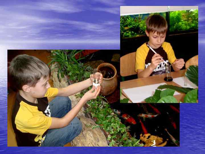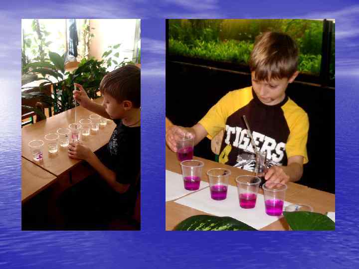 ВЫВОДЫ: 1. Изученный нами метод окисляемости аквариумной 2. 3. воды перманганатом калия - прост и дешев, поэтому мы смело его можем рекомендовать для начинающих аквариумистов, у которых нет возможности проводить исследования в химической лаборатории. Все протестированные аквариумы нашего центра имеют малый и средний уровни окисляемости, то есть уход за ними можно считать удовлетворительным. Уровень окисляемости воды перманганатом калия зависит от объема аквариума, наличия растений, присутствия питательного грунта для растений.