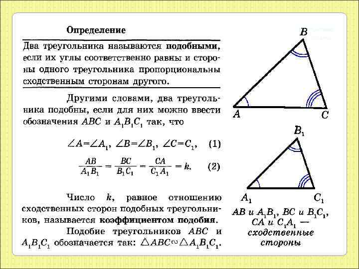 Определение подобных треугольников