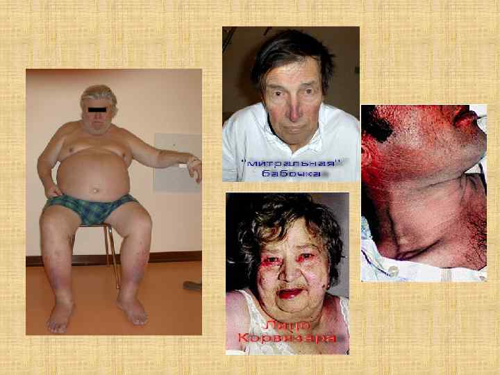 Типичные жалобы Кардиалгии; Одышка (при физ. нагрузке); Сердечная астма; Сердцебиение; Перебои в деятельности сердца; Отёки; Снижение переносимости к физ. нагрузке