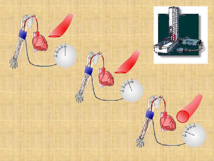 5. Собственно измерение : - быстро накачать воздух в манжету до уровня давления, на 20 мм Hg превышающего систолическое (по исчезновению пульса); - снижать давление в манжете со скоростью 2 3 мм Hg в секунду; - уровень давления, при котором появляется первый тон, соответствует систолическому давлению; - уровень давления, при котором происходит исчезновение тонов, принимают за диастолическое давление; - если тоны слабы, то обследуемому следует поднять руку и несколько раз согнуть ее и разогнуть, а затем измерение повторяют; не следует сильно сдавливать артерию мембраной фонендоскопа; - первоначально следует измерить давление на обеих руках; (в норме разница артериального давления на левой и правой руке составляет 5 -10 мм рт. ст. ) - в дальнейшем измерения делаются на той руке, где давление выше;