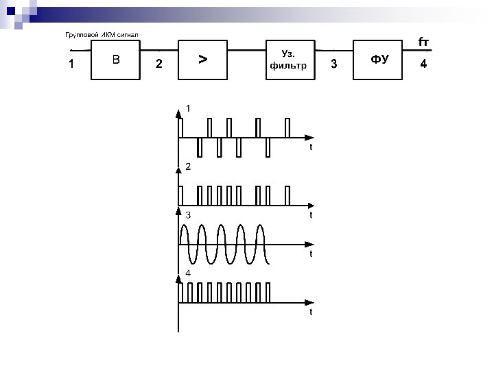 Принцип временного объединения потоков n n БЦСпер и БЦСпр – блоки цифрового сопряжения тракта передачи и приема. БЦСпер укорачивает и распределяет во времени импульсы каждой из объединяемых систем. КЦП (устройство объединения) и РЦП (устройство разделения) – коллектор и распределитель цифровых потоков, служащие соответственно для объединения потоков в тракте передачи и их разделения в тракте приема. Пер СС и Пр СС – передатчик и приемник синхросигнала. ВТЧ – выделитель тактовой частоты.