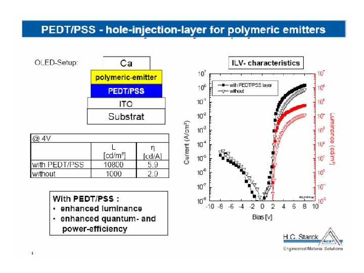 Сравнение органических и неорганических полупроводников Organic Electronic Silicon Cost $5 / ft 2 $100 / ft 2 Fabrication Cost Low Capital $1 -$10 billion Device Size 10 ft x Roll to Roll < 1 m 2 Material Flexible Plastic Substrate Rigid Glass or Metal Required Conditions Ambient Processing Ultra Cleanroom Process Continuous Direct Printing Multi-step Photolithography