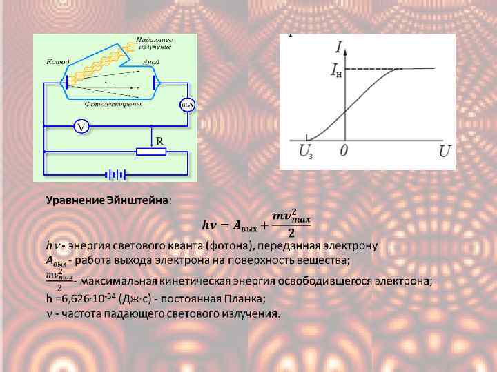 Фотоэффект • Внешним фотоэффектом (фотоэлектронной эмиссией) называется испускание электронов веществом под действием электромагнитного излучения. Электроны, вылетающие из вещества при внешнем фотоэффекте, называются фотоэлектронами, а электрический ток, образуемый ими при упорядоченном движении во внешнем электрическом поле, называется фототоком.
