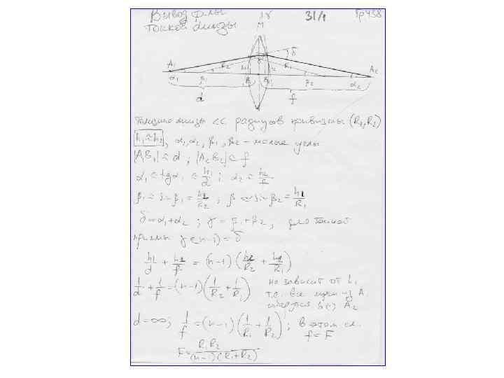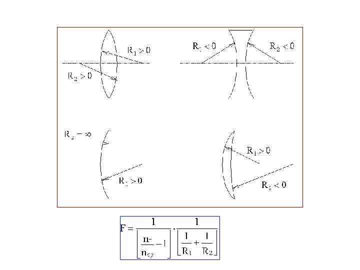 Двойное фокусное расстояние Оптический центр линзы Фокальная плоскость 2 F F О F C 1 2 F C 2 Главный фокус линзы