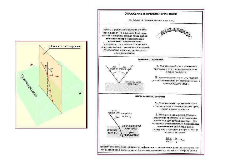 Геометрическая оптика основана на представлении о световых лучах Световой луч - линия, вдоль которой распространяется энергия светового излучения. Луч всегда перпендикулярен к волновой поверхности. Оптические свойства вещества характеризуются величиной, называемой абсолютным показателем преломления n. Абсолютный показатель преломления показывает во сколько раз скорость света в вакууме с больше скорости света в веществе v n = c/v. Относительный показатель преломления равен отношению абсолютных показателей преломления в двух средах: n 21 = n 2/n 1; n 21 = v 1/v 2. где v 1 и v 2 - скорость света в первой и во второй среде соответственно.