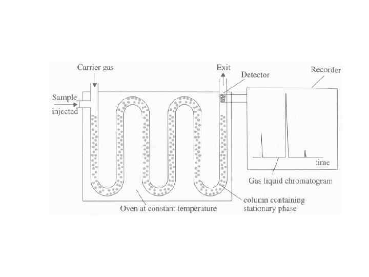 • Gas Liquid Chromatography – More precise than breathalyzer – Uses a stationary phase (non-volatile liquid or solid support) and a mobile phase (inert gas, like N 2) – Breath components (CO 2, H 2 O, and alcohol vapor) are injected into the machine and partitioned (divided) between the stationary and mobile phases – Components exit at different intervals (each substance has a different affinity and bond strength for the two phases, and thus move through at different rates) – Components are detected » Retention time for each component is measured (time taken for each component to pass through the column) » Blood alcohol’s retention time is compared to the retention time for a standard ethanol sample