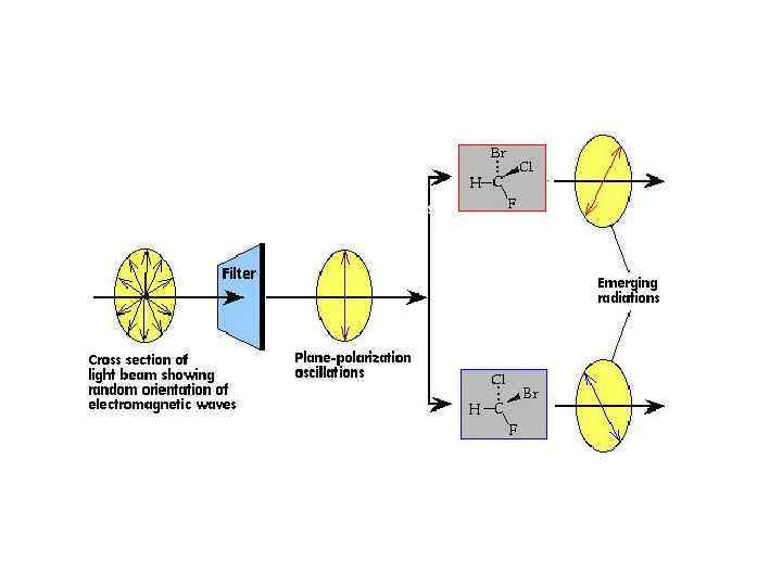 • Optical isomers: – Different from geometric isomers: • The molecules are chiral (asymmetric, meaning that there are four different groups around a central atom) • The isomers are non-superimposable mirror images of one another – Each isomers differs in its optical activity (the ability to rotate the plane of polarized light) • One isomer (enantiomer) rotates the plane of polarized clockwise (+ form), the other rotates it counterclockwise (- form)