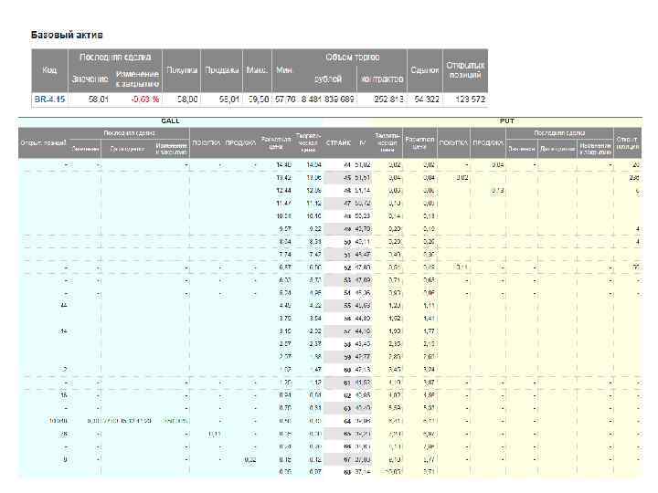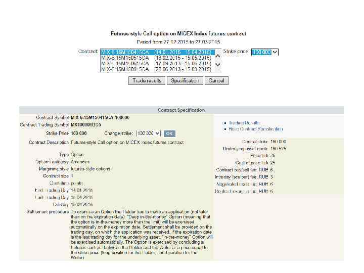 • Synthetic Position - a combination of a futures contract and an option, in which one is bullish and one is bearish. • • Sell Call Option – buy Futures - synth. Short Put Sell Put - sell Futures - synth. Short Call Buy Call – Sell Stosk - synth. Long Put Buy Put – Buy Stock - synth. Long Call • Bought Put – cash is blocked – 25 949. 12 • Sell Put – cash is blocked – 26147. 51 • Close position at the purchasing price – cash is deblocked. • Central Strike – option exercise price which is the most close to the price of underlying asset.