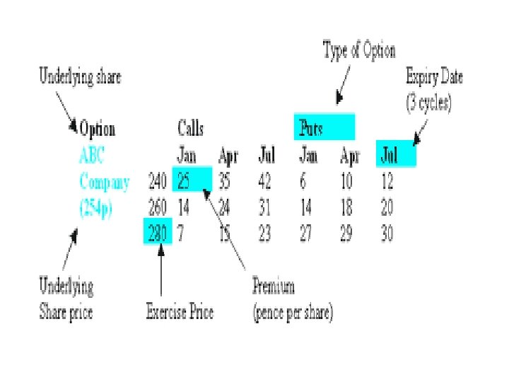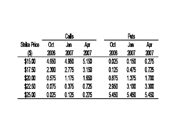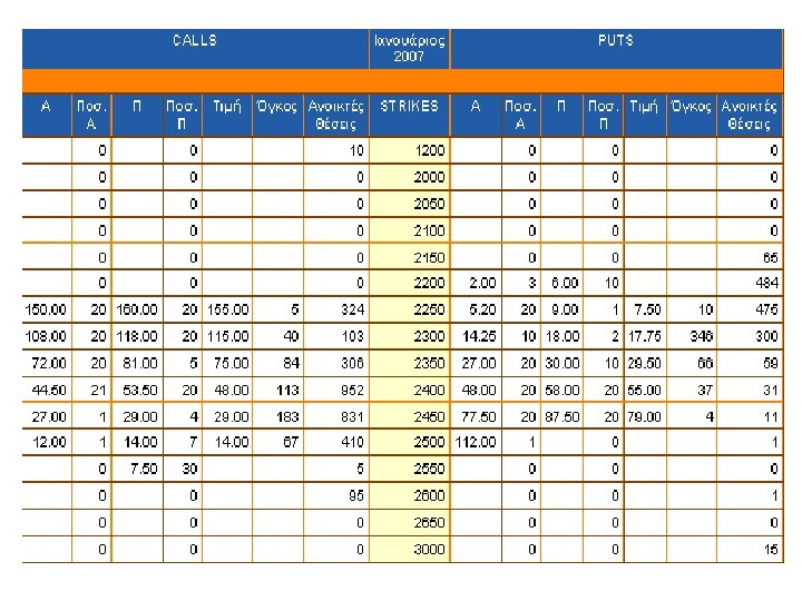 Example of index options • Athens Stock Exchange: Calls & Puts • FTSE/ASE – 20, FTSE/ASE – 40 • Price in units, multiplier 5 Euro • Table: Trading activity on January 2007 option contracts → underlying FTSE/ASE-20 → 8 December 2006, time: 14. 25) → Current FTSE/ASE-20 price: 2385 points