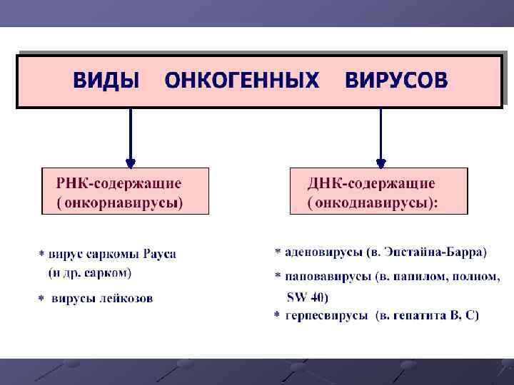 Онкогенные ретровирусы остротрансформирующие - имеют в своем геноме онкоген - вызывают развитие опухолей после короткого латентного периода медленно трансформирующие - вызывают развитие опухолей после длительного латентного периода. - не имеют в своем составе онкогена - основной механизм их действия – мутационный