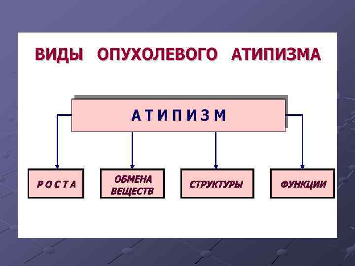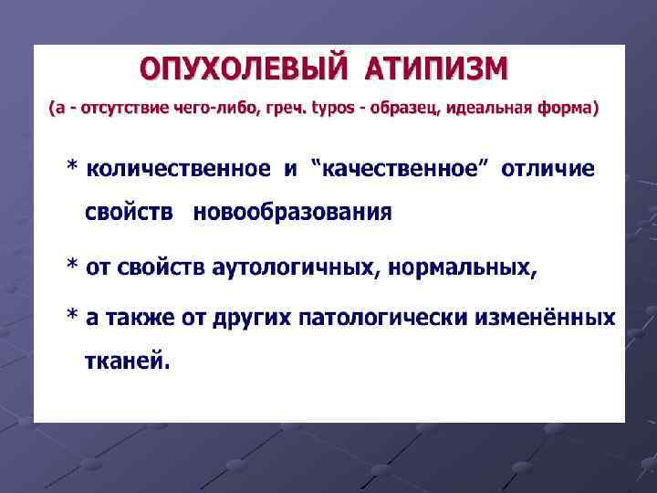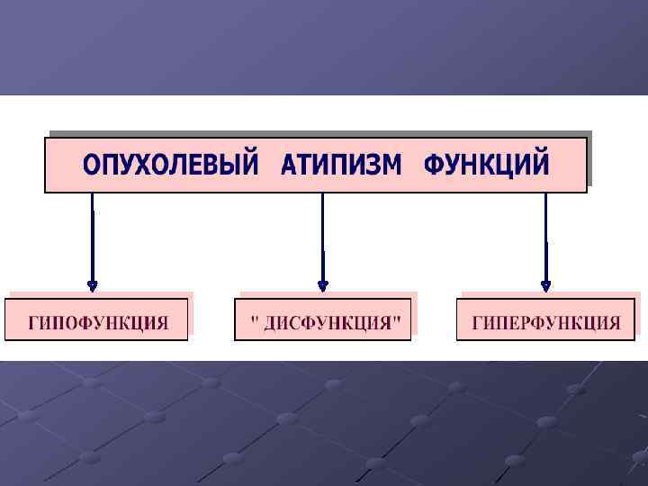 Атипизм деления и созревания гиперплазия иммортализация анаплазия Характерно увеличение числа делящихся клеток до 30 -50% и даже 100% Опухолевые клетки преодолевают «барьер Хейфлика» и начинают размножаться неопределенно долго Нарушены созревание и дифференцировки, клетка похожа на эмбриональную или недифференцированную.