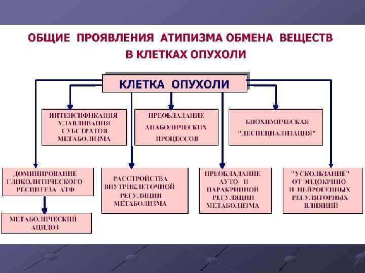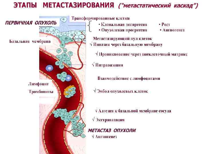 Причины инвазивного роста Уменьшение сил сцепления (адгезии) между клетками опухоли: - дефицит молекул адгезии - гидролиз органических молекул Электростатическое отталкивание опухолевых клеток друг от друга Появление у опухолевых клеток способности к амебоидному движению Синтез клетками опухоли большого количества рецепторов к лигандам молекул адгезии