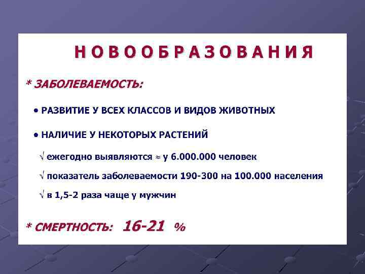 Опухолевый рост Лекция подготовлена старшим преподавателем кафедры патофизиологии Н. Л. Негодяевой