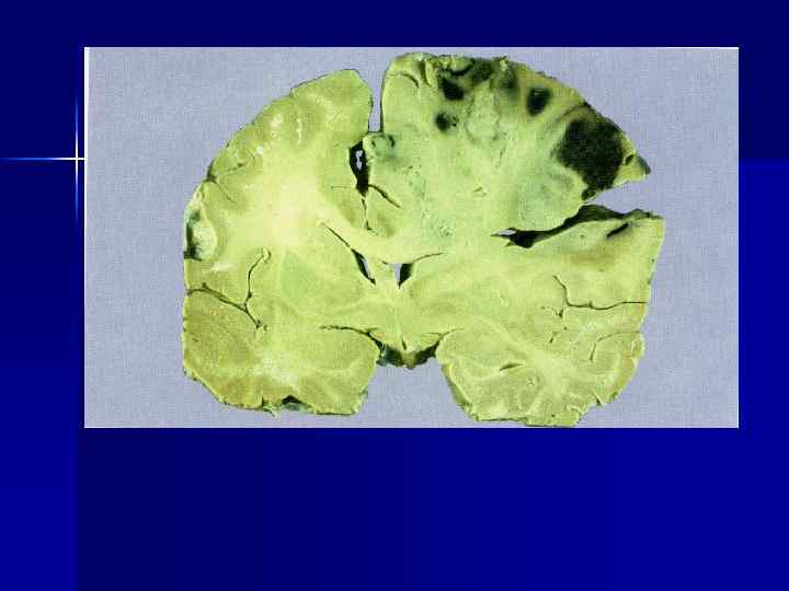 Б) Мультоформная глиобластома – развивается преимущественно у мужчин 60 – 70 лет. Локализуется в полушариях мозга, реже в мозжечке и совсем редко в спинном мозге.