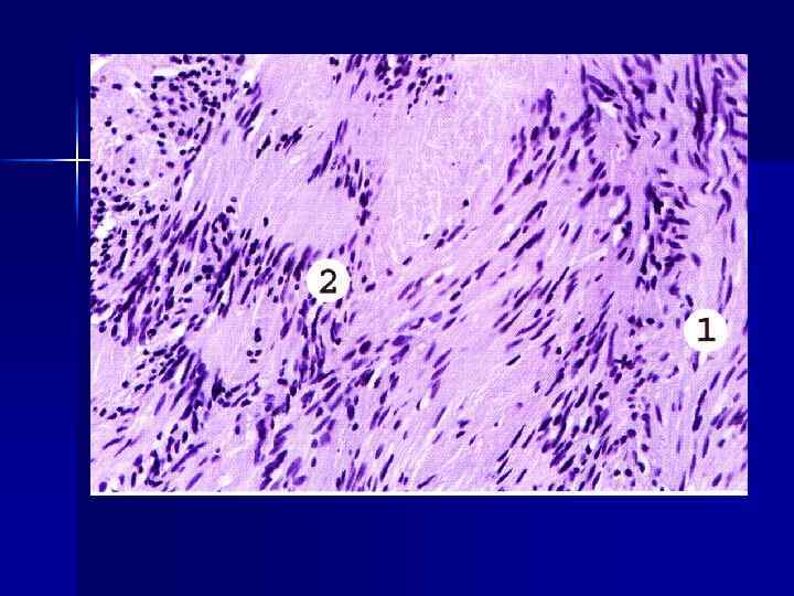 Макроскопически нейрофибромы растут в форме мягких узлов, часто множественных. Опухоль состоит из веретенообразных клеток и коллагеновых волокон. Через опухоль проходят нервные стволы с миксоидными изменениями в эндонервии.