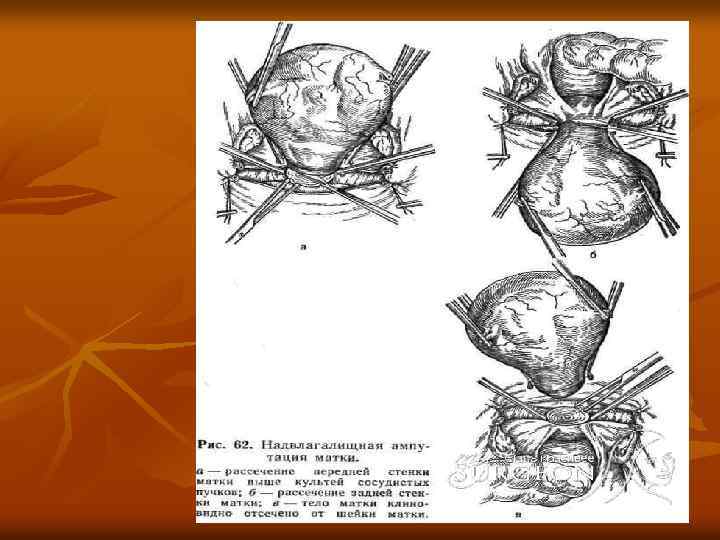 Методы оперативного лечения n n n Консервативные миомэктомии – отсечение и вылущивание узлов Полурадикальные дефундация Радикальные методы – экстирпация матки и надвлагалищная ампутация