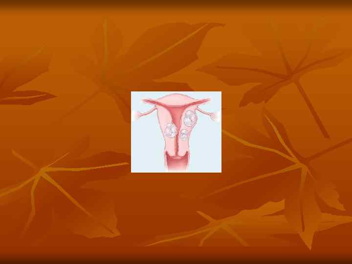 КЛИНИЧЕСКИЕ ПРОЯВЛЕНИЯ n n n БЕССИМПТОМНОЕ ТЕЧЕНИЕ ГЕМОРРАГИЧЕСКИЙ СИНДРОМ (ГИПЕРСИНДРОМ, МЕНО- И МЕТРОРРАГИИ) БОЛЕВОЙ СИНДРОМ НАРУШЕНИЯ ФУНКЦИИ СОСЕДНИХ ОРГАНОВ БЕСПЛОДИЕ