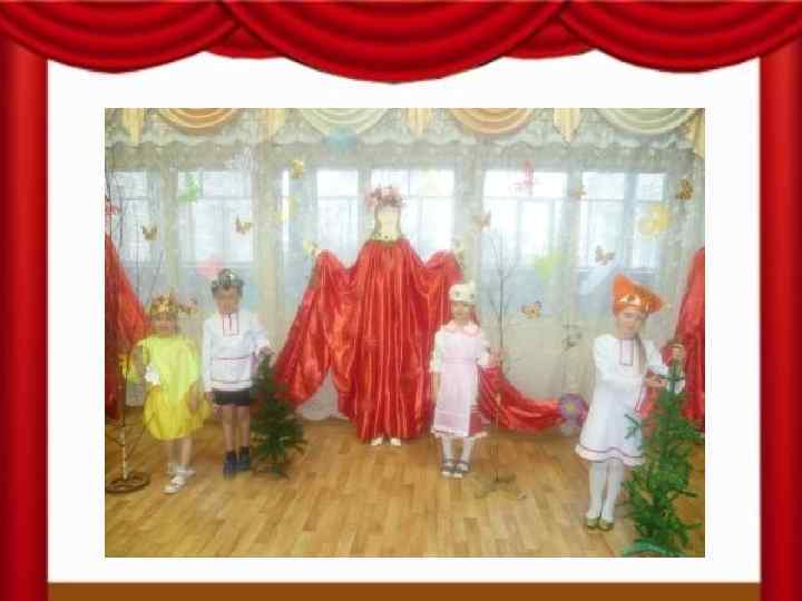 В детском саду функционирует свой театр «Сказочка» который посещают воспитанники старшей группы, а на спектакли театра с удовольствием приходят воспитанники групп, педагоги и родители. марийского народа в театрализованной деятельности. Актуальность обусловлена необходимостью разрешения вопросов направленных на воздействие театрализованной деятельности, на развитие интереса к культуре марийского народа, которое основано на марийском фольклоре: сказках народа мари, которые оказывают положительное эмоциональное воздействие на детей в дошкольном возрасте.