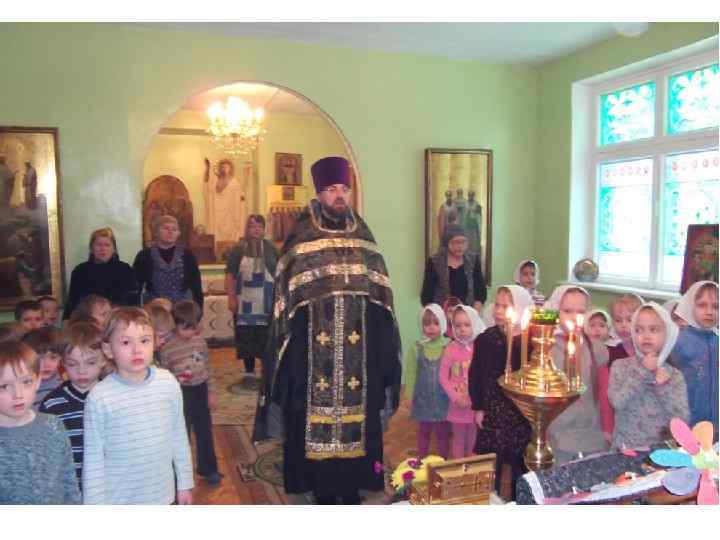 Задачи православного детского сада: n n знакомить детей с основными понятиями христианского православного вероучения; знакомить детей с традициями православной Церкви, молитвами, календарем, праздниками; воспитывать в детях доброжелательное отношение друг ко другу, терпимость, уважение и бережное отношение к ближнему и окружающему миру; учить детей оценивать поступки свои и окружающих, явления и события происходящие в мире, относиться к происходящему с точки зрения христианской морали.