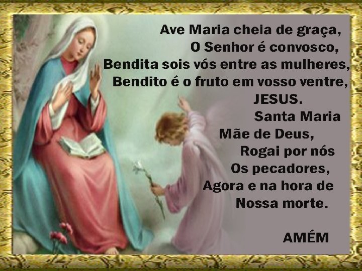 Confesso a Deus todo poderoso e a vós irmão e irmãs que pequei muitas vezes por pensamentos, palavras, atos e omissões por minha culpa, tão grande culpa. E peço a Virgem Maria, aos anjos e santos e a vós irmão e irmãs que rogueis por mim a Deus nosso Senhor