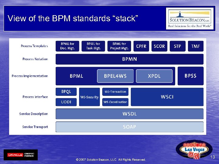 View of the BPM standards “stack” © 2007 Solution Beacon, LLC. All Rights Reserved. 13