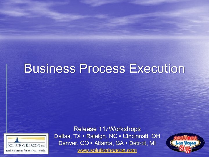 Business Process Execution Release 11 i Workshops Dallas, TX • Raleigh, NC • Cincinnati, OH Denver, CO • Atlanta, GA • Detroit, MI www. solutionbeacon. com