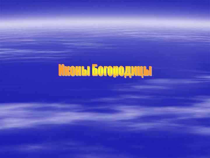 Богоматерь Владимирская. Самая почитаемая икона, посвященная Богоматери на Руси. Она держит младенца Иисуса на руках и, наклонившись к нему, прижимается щекой к его щечке. С этой иконой связаны многие легенды: Во время монголо-татарского ига она помогала русским войскам в борьбе с захватчиками.
