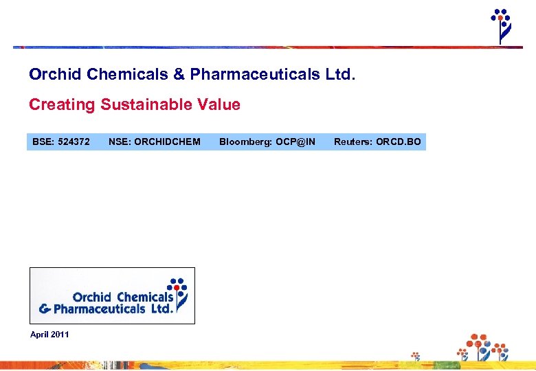 Orchid Chemicals & Pharmaceuticals Ltd. Creating Sustainable Value BSE: 524372 NSE: ORCHIDCHEM Bloomberg: OCP@IN Reuters: ORCD. BO April 2011 www. orchidpharma. com 1