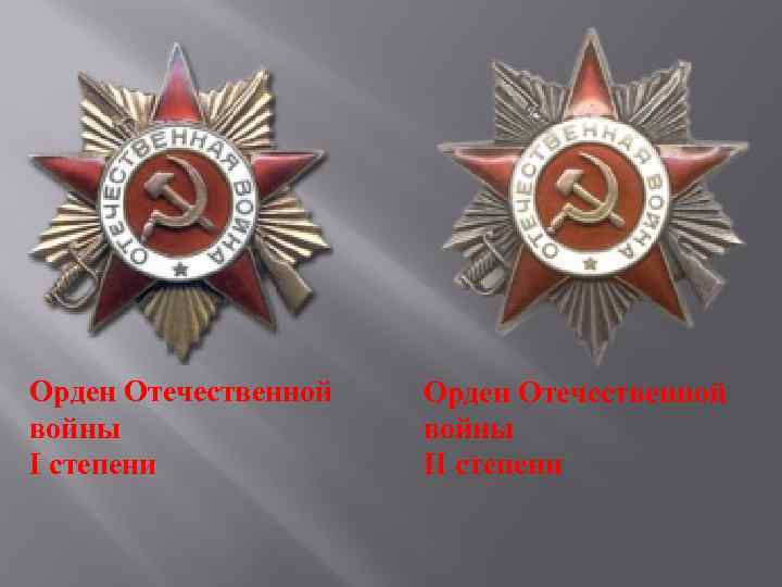 Орден Отечественной войны I степени Орден Отечественной войны II степени