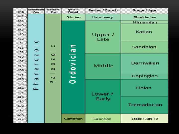 Палеозойская эра. Ордовикский период (начался 485, 4 ± 1, 9 млн лет назад, кончился 443, 4 ± 1, 5 млн лет назад. )