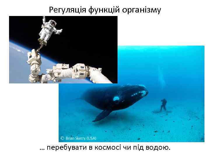 Регуляція функцій організму … перебувати в космосі чи під водою.