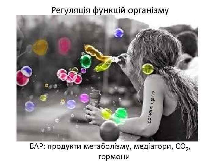 Гормони щастя Регуляція функцій організму БАР: продукти метаболізму, медіатори, СО 2, гормони