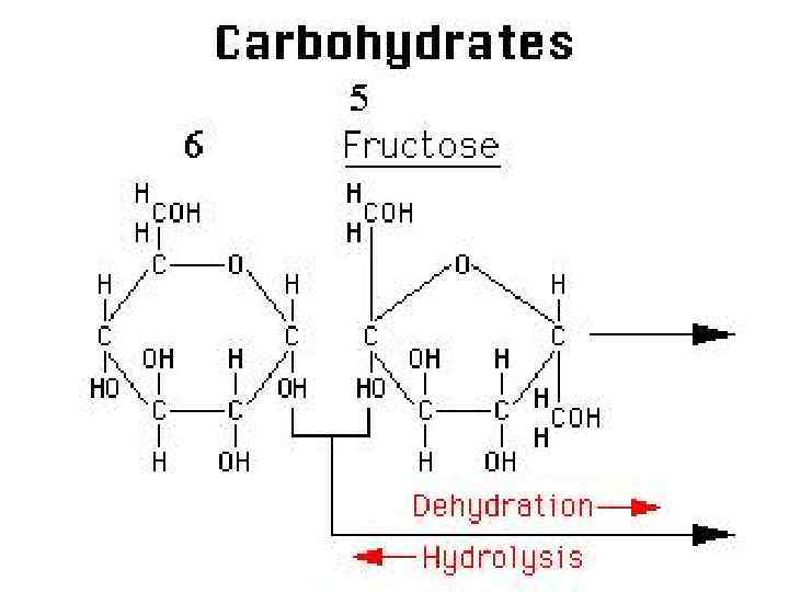 • During the formation of disaccharide one molecule water is released. This type of reaction is called dehydration. • The reverse of dehydration is hydrolysis. In this reaction water molecules are added to reaction. MALTOSE + H 2 O GLUCOSE + GLUCOSE