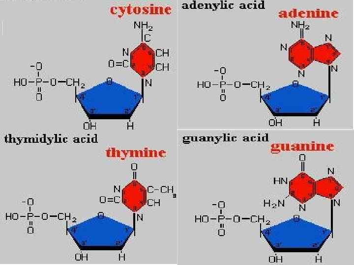 ORGANIC BASE • Organic bases are nitrogen containing compounds. These are adenine (A), guanine (G), thymine (T), cytosine (C) and urasil (U). • Nucleotides are classified according to its organic base. For example: • Nucleotide which contains thymine is called thymine nucleotide.