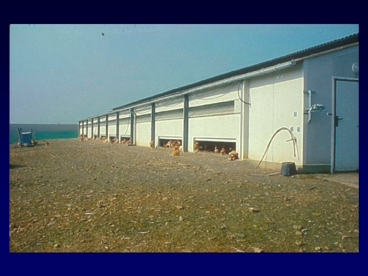 HOUSING • Certain living conditions • Exercise • Provide for • Escape bad weather natural behaviors • Provide fresh air • Move birds without injury • Semi-confinement shelters • Equipped with access doors so birds can move freely between inside and outside • Some buyers may dictate stocking density standards do not stipulate