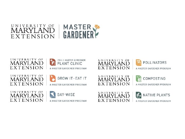 Resources extension. umd. edu/hgic extension. umd. edu/learn/ask-gardening marylandgrows. umd. edu extension. umd. edu/mg • • • extension. umd. edu/growit Take a food gardening class Find local community gardens Learn about youth/school gardens