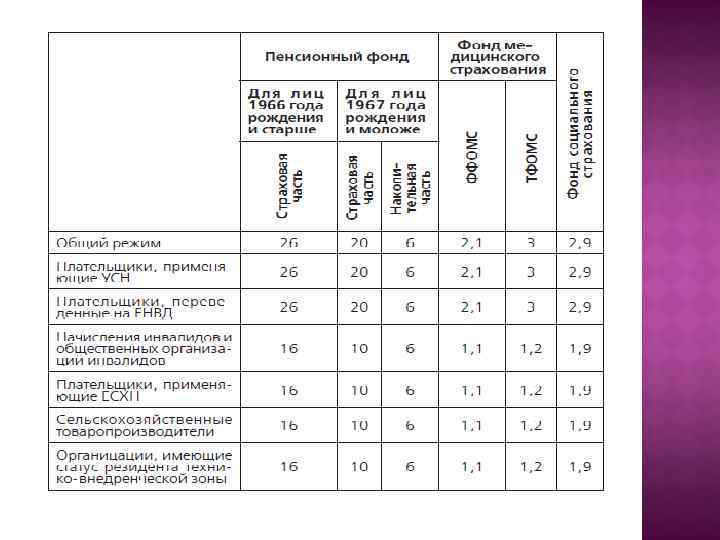 Год 2009 2010 2011 -2014 Федеральный бюджет/ПФР 14 ФСС - ФФОМС ТФОМС - Итого 14 (при размере дохода на сотрудника до 280 тыс. руб. , далее взнос взимается по пониженным ставкам) 14 14 26 2, 9 2, 1 3 34