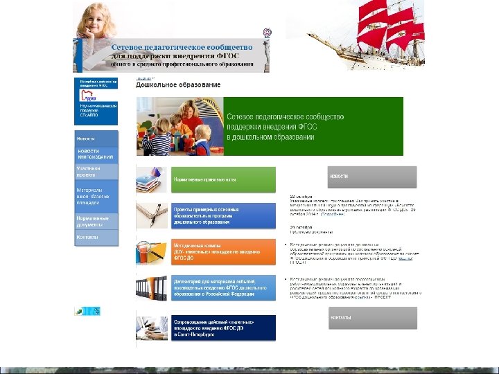ОУ-городские «пилотные площадки» по введению ФГОС ДО 1. ГБДОУ № 93 Выборгского района 2. ГБДОУ № 126 Выборгского района 3. ОУ № 619 Калининского района 4. ГБДОУ № 18 Кронштадтского района 5. ГБДОУ № 41 Красногвардейского района 6. ГБДОУ № 69 Красногвардейского района 7. ГБДОУ № 80 Красногвардейского района 8. ГБДОУ № 123 Невского района 9. ГБДОУ № 25 Приморского района 10. ГБДОУ № 102 Фрунзенского района 11. ГБДОУ № 113 Фрунзенского района 12. ГБДОУ № 59 Центрального района (утверждены решением Координационного совета Комитета по образованию от 23. 05. 14)