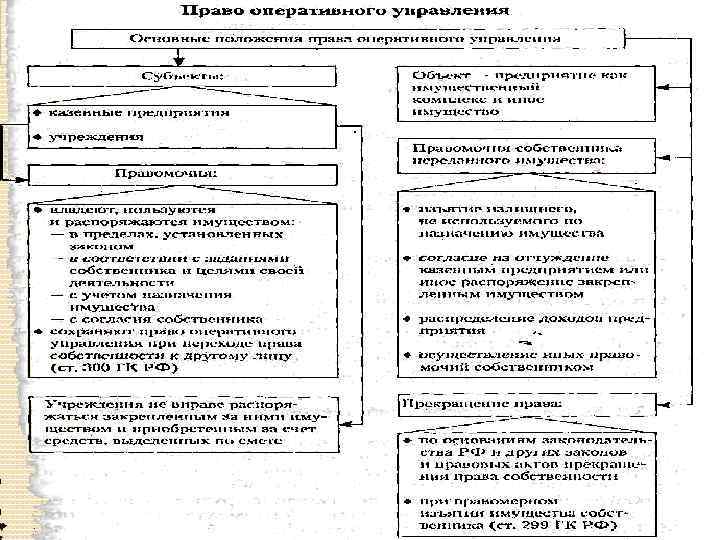Имущественные права унитарного предприятия и собственника УП на праве хозяйственного ведения УП на праве оперативного управления Владеет, пользуется и распоряжается имуществом. Собственник решает вопросы: создания, реорганизации и ликвидации предприятия; определения предмета и целей его деятельности, контроля за использованием и сохранностью имущества. Собственник имеет право на получение части прибыли. Владеет и пользуется имуществом в соответствии с целями своей деятельности и заданиями собственника. Распоряжается имуществом лишь с согласия собственника. Самостоятельно реализует продукцию, если иное не установлено правовыми актами. Собственник вправе изъять лишнее, или не по назначению используемое оборудование.
