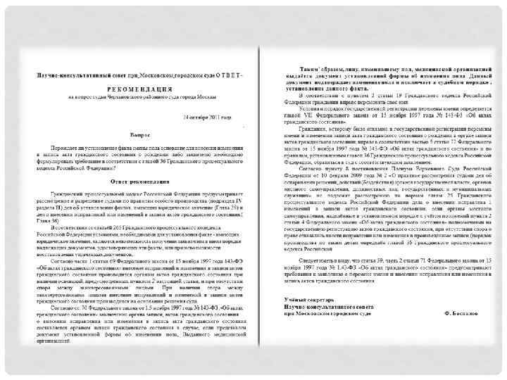 Статья 70 ФЗ № 143 “Заключение органа записи актов гражданского состояния о внесении исправления или изменения в запись акта гражданского состояния” Заключение о внесении исправления или изменения в запись акта гражданского состояния составляется органом записи актов гражданского состояния в случае, если: в записи акта гражданского состояния указаны неправильные или неполные сведения, а также допущены орфографические ошибки; запись акта гражданского состояния произведена без учета правил, установленных законами субъектов Российской Федерации; представлен документ об изменении пола, выданный медицинской организацией по форме и в порядке, которые установлены федеральным органом исполнительной власти, осуществляющим функции по выработке и реализации государственной политики и нормативно-правовому регулированию в сфере здравоохранения.