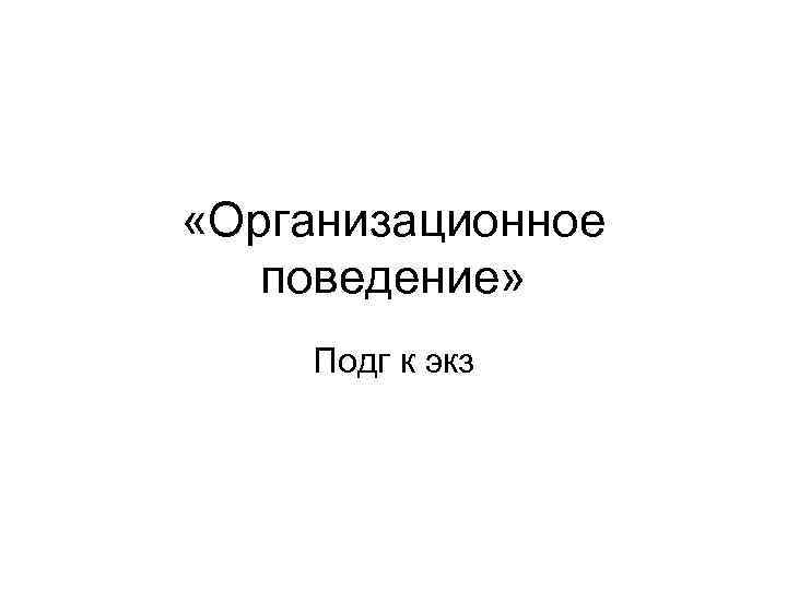 «Организационное поведение» Подг к экз