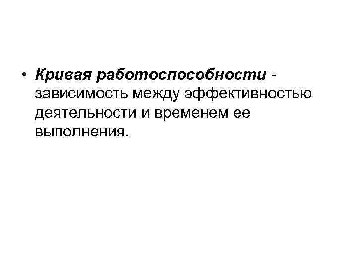 • Кривая работоспособности - зависимость между эффективностью деятельности и временем ее выполнения.