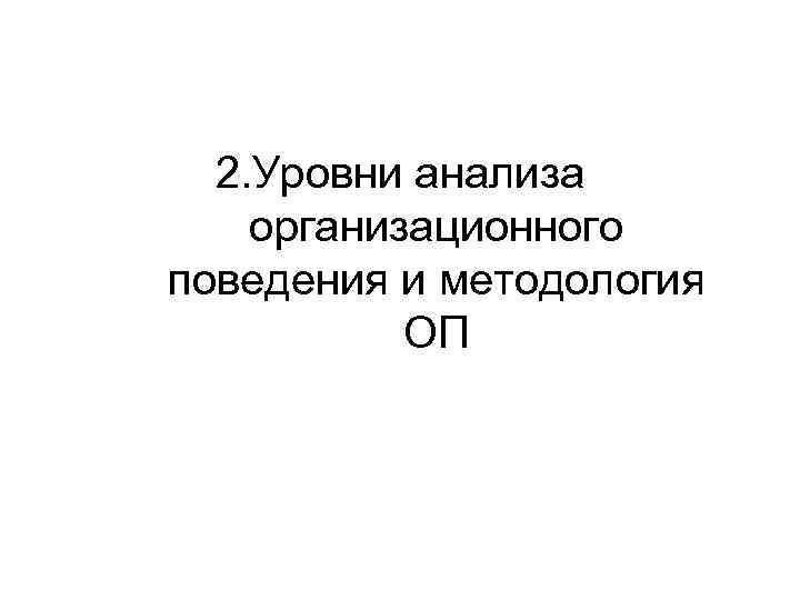2. Уровни анализа организационного поведения и методология ОП